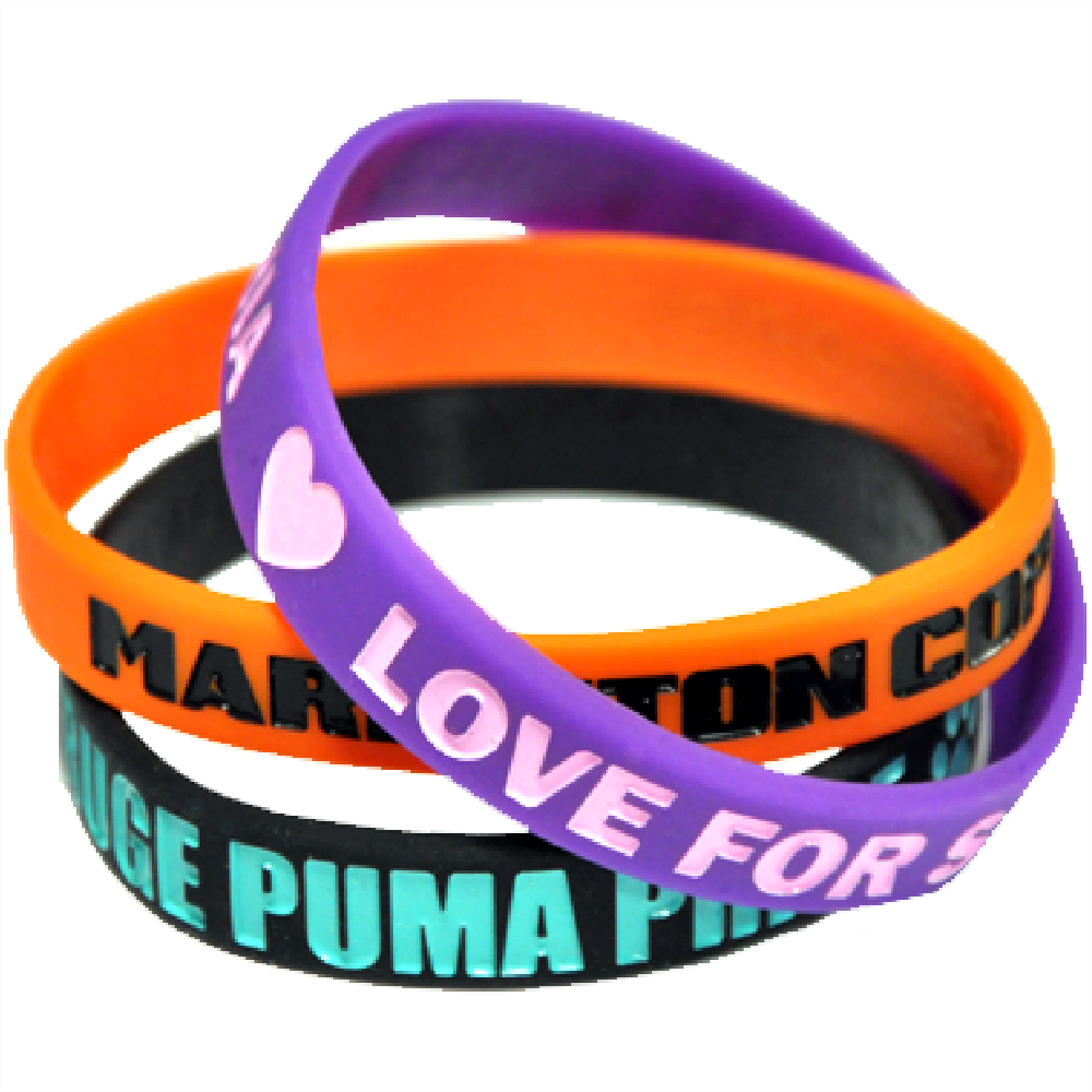 Silikonbänder für Erwachsene oder Kinder incl.farbgefüllter Tiefprägung