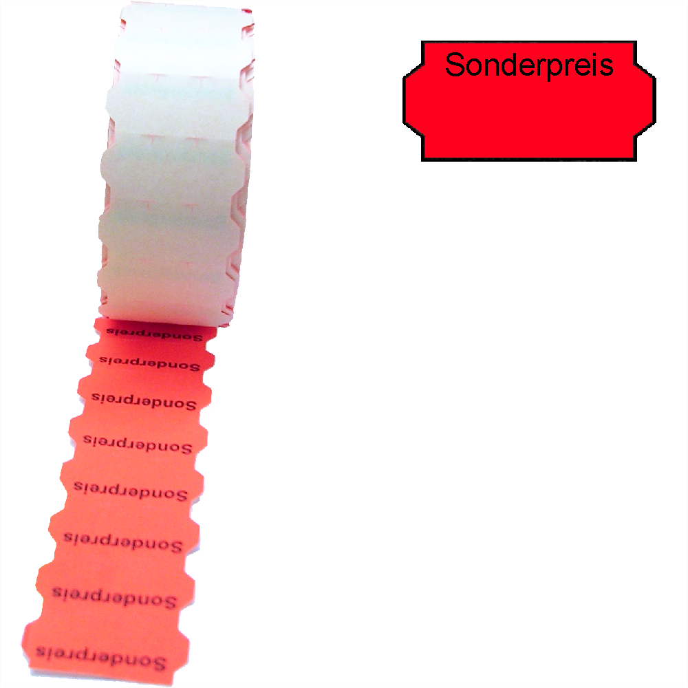 - Wellenrandetiketten in neonrot mit Aufdruck "Sonderpreis" - Rolle á 1.500 Stück Etiketten - mit Schlitzstanzung - Klebung Standard für viele gängigen Preisauszeichner: Top2000, SYSTAK, meto, contact, Tovel, Prix, SP1, Blitz.... - Lieferzeit sofort ab/am Lager Durach - Lagerware Suchen Sie einen bestimmten Artikel? Wünschen Sie ein unverbindliches Angebot? Fragen Sie bei uns an.